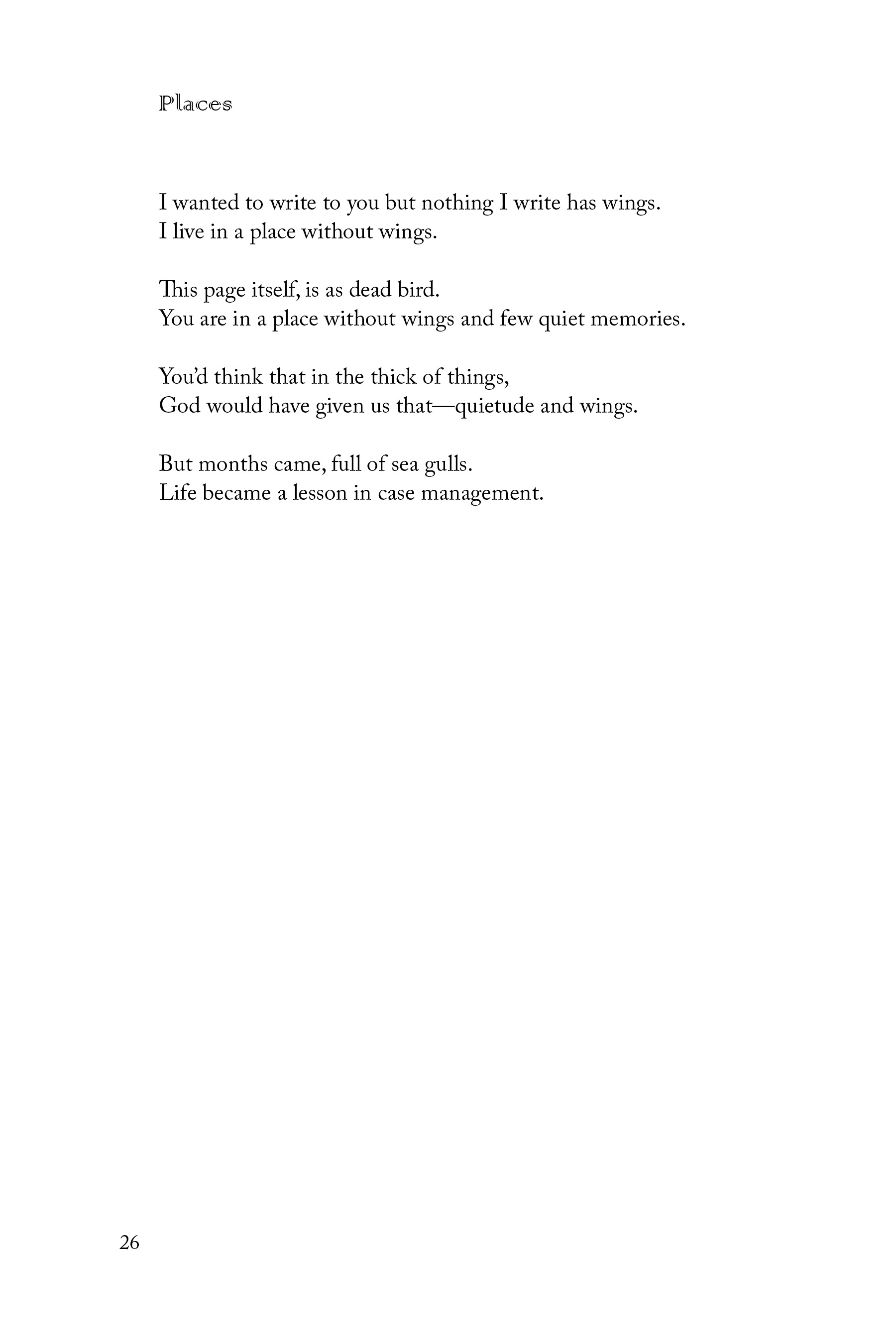 These are all poetry collections , except for Antique Densities which borders on prose poetry and fiction. Things Seemed to be Breaking is a collection of black out or erasure poems, and may fit in the “found” category as well as that of visual poems.
