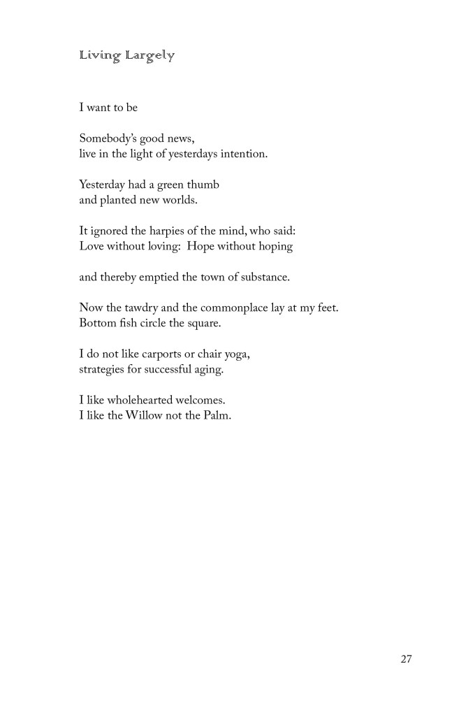 You can walk the same summer day’s path thinking about annoying things or you can be counting your blessings, don’t you know. When you have the insight you are on the path to self knowledge, ha. But then what is knowledge? Know your self. How little we know. Facts and figures, skills and practice—talent, now there is a conundrum. What good is talent if you do nothing with it. Some consider success the end to the means. But the business of art is not making art, learning what your teacher is really saying, because the best teaching is by example. You know this if your mother did not make you do things. You cannot force people to do things. Mothers teach by example.